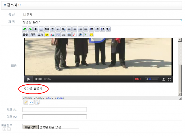 추가로 글쓰기를 할려면 [엔터]키를 친 후 글을 작성합니다.
