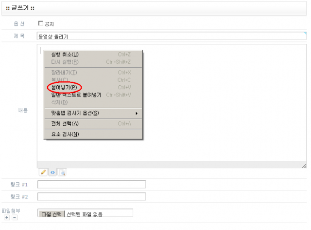 복사해두었던 동영상 소스를 붙여넣기 합니다.