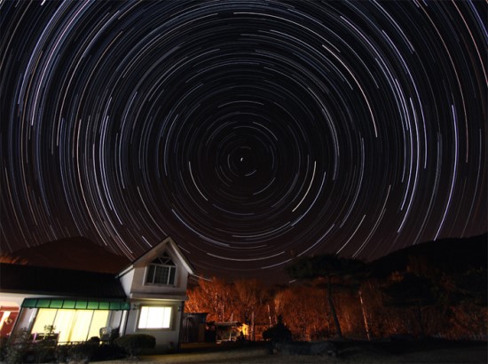 북쪽하늘의 별의 일주운동을 봐 보시길